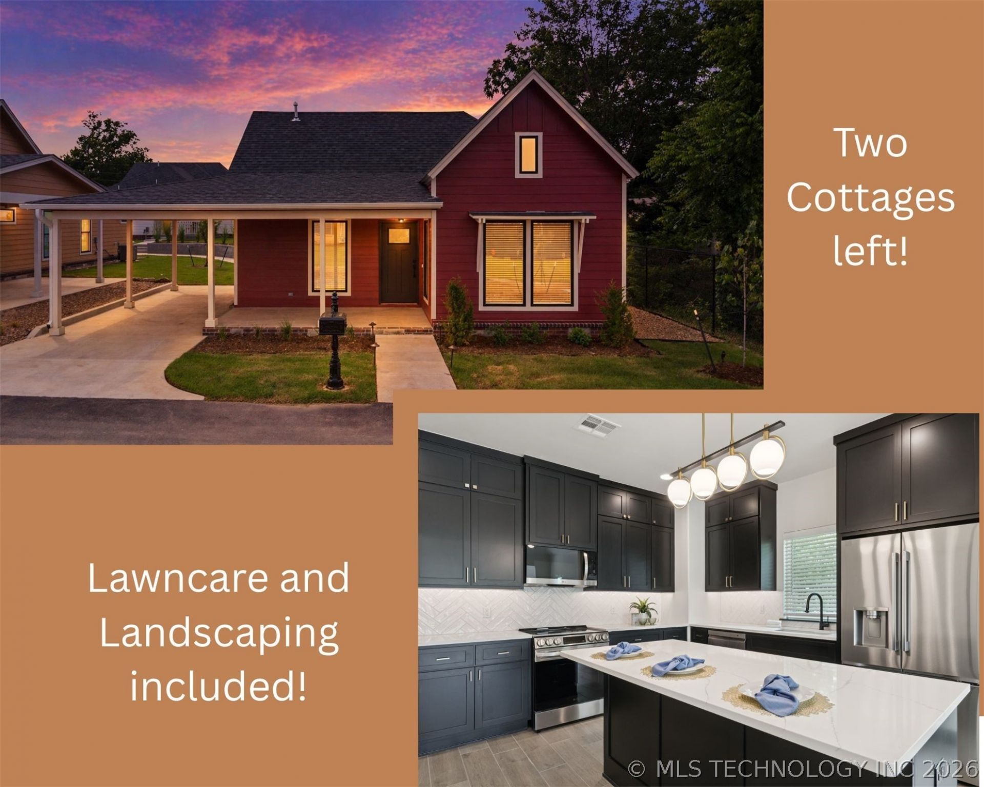 Welcome to The Cottages on Bluff Street, where low-maintenance living meets elevated cottage style. This beautifully landscaped home is filled with natural light and designed with an open layout and vaulted ceilings that make the space feel bright and welcoming from the moment you walk in. Inside, you'll find thoughtful upgrades throughout-wood-look tile flooring, smooth-finish walls, soft-close cabinets, designer lighting, and a modern color palette that feels both modern and timeless. The kitchen comes complete with quality finishes and the refrigerator stays, making this home truly move-in ready. Additional builder upgrades include a tankless hot water heater, full foam insulation and blinds throughout. One of the biggest perks? The HOA takes care of the things you don't want to worry about. Lawn care, landscaping, irrigation, seasonal plantings, snow removal, trash service-even festive fall dcor and Christmas lights are included. It's the kind of convenience that lets you enjoy your home instead of maintaining it. Located just off Historic Route 66, The Cottages offer the perfect balance of small-town charm and city convenience. You're minutes from the Hard Rock Casino, Tulsa International Airport, Midtown, and Downtown Tulsa, making commuting and entertainment easy. Even better, this home qualifies for USDA zero-down financing, the preferred lender is offering a 1% lender credit, and a two-year home warranty is included for added peace of mind. This isn't just a place to live-it's a lifestyle designed to make everyday life easier and more enjoyable.