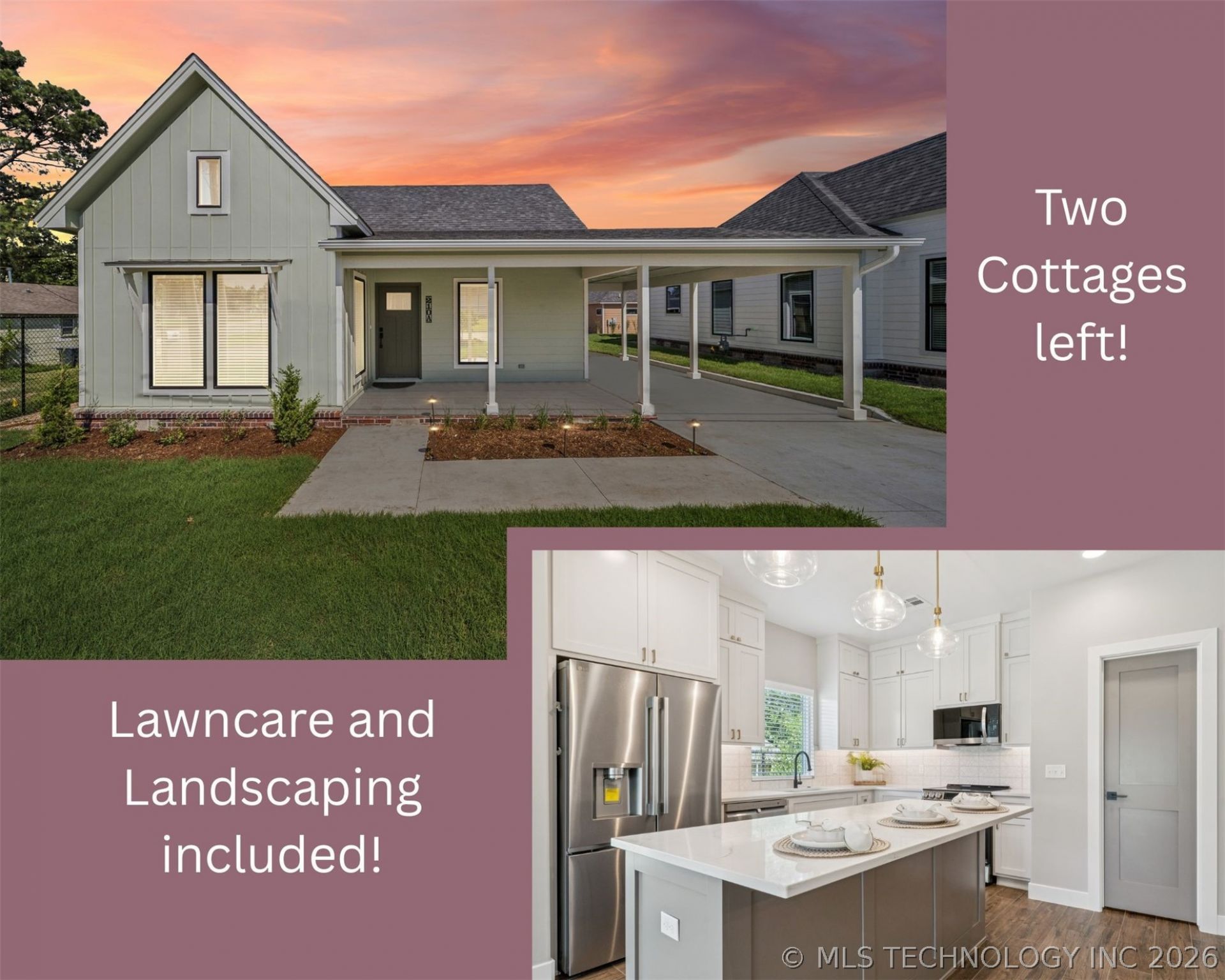 Welcome to The Cottages on Bluff Street, where low-maintenance living meets elevated cottage style. This beautifully landscaped home is filled with natural light and designed with an open layout and vaulted ceilings that make the space feel bright and welcoming from the moment you walk in. Inside, you'll find thoughtful upgrades throughout-wood-look tile flooring, smooth-finish walls, soft-close cabinets, designer lighting, and a warm, custom color palette that feels both modern and timeless. The kitchen comes complete with quality finishes and the refrigerator stays, making this home truly move-in ready. Additional builder upgrades include a tankless hot water heater, full foam insulation and blinds throughout. One of the biggest perks? The HOA takes care of the things you don't want to worry about. Lawn care, landscaping, irrigation, seasonal plantings, snow removal, trash service-even festive fall dcor and Christmas lights are included. It's the kind of convenience that lets you enjoy your home instead of maintaining it. Located just off Historic Route 66, The Cottages offer the perfect balance of small-town charm and city convenience. You're minutes from the Hard Rock Casino, Tulsa International Airport, Midtown, and Downtown Tulsa, making commuting and entertainment easy. Even better, this home qualifies for USDA zero-down financing, the preferred lender is offering a 1% lender credit, and a two-year home warranty is included for added peace of mind. This isn't just a place to live-it's a lifestyle designed to make everyday life easier and more enjoyable.
